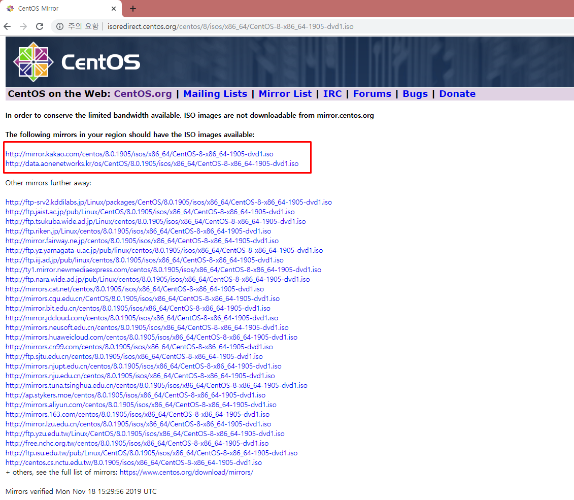 3. mirror 사이트에서 url아무거나 한개 선택해서 다운받기