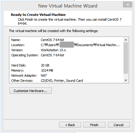 2. Virtual Machine Settings > Hardware > Memory : 1024MB