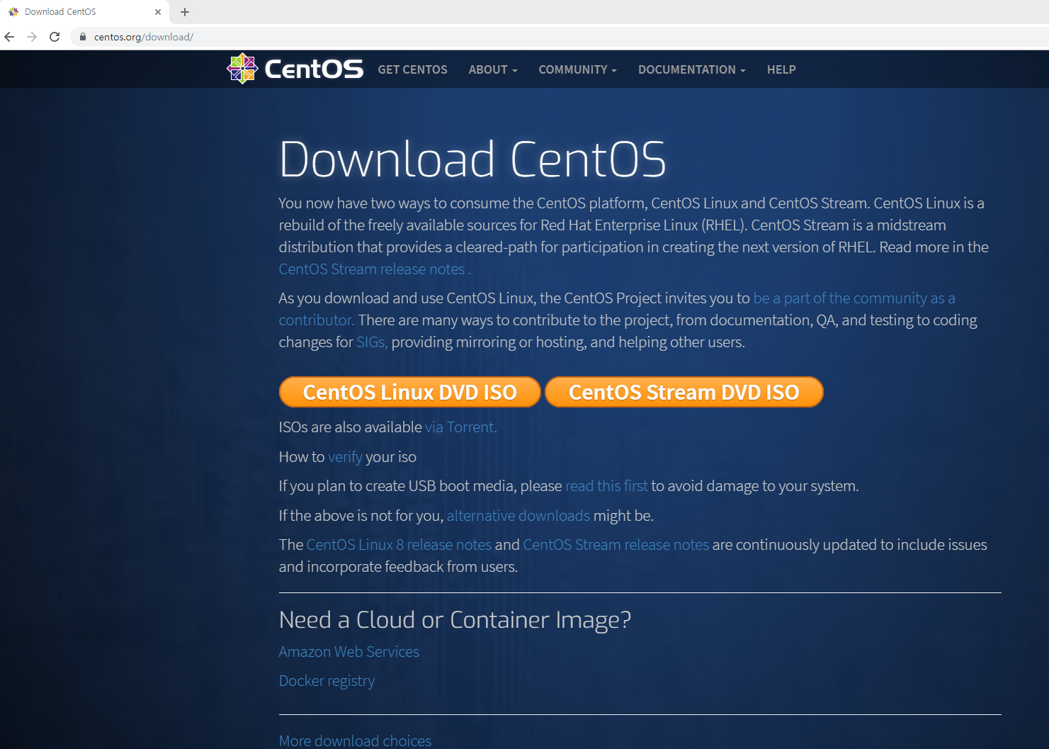 1. CentOS 홈페이지 접속후 다운로드