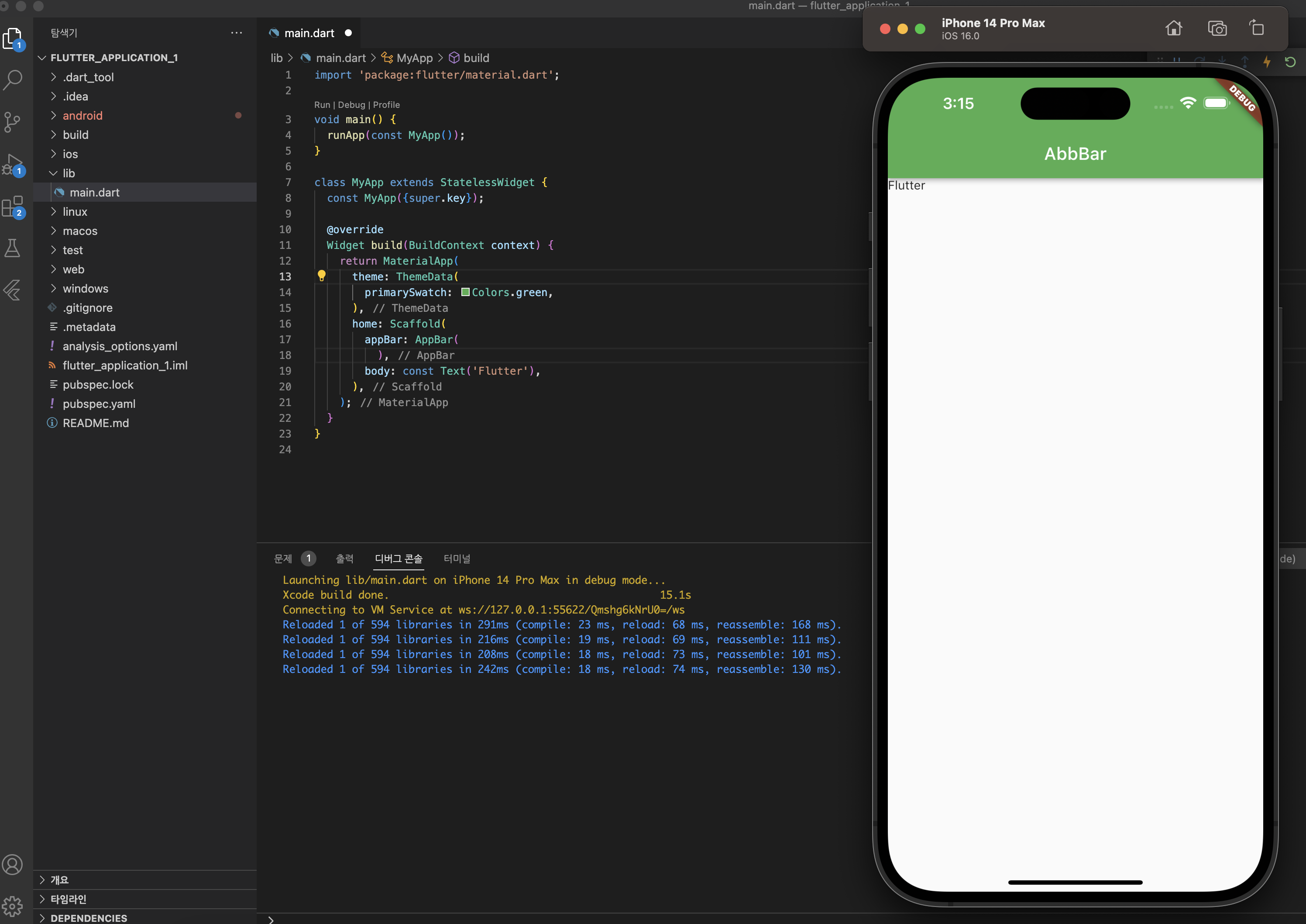 - MeterialApp내의 primarySwatch를 통해 컬러 지정 가능 (Colors. 뒤에 [command + .] 를 통해 색상 자동완성 변경 가능)